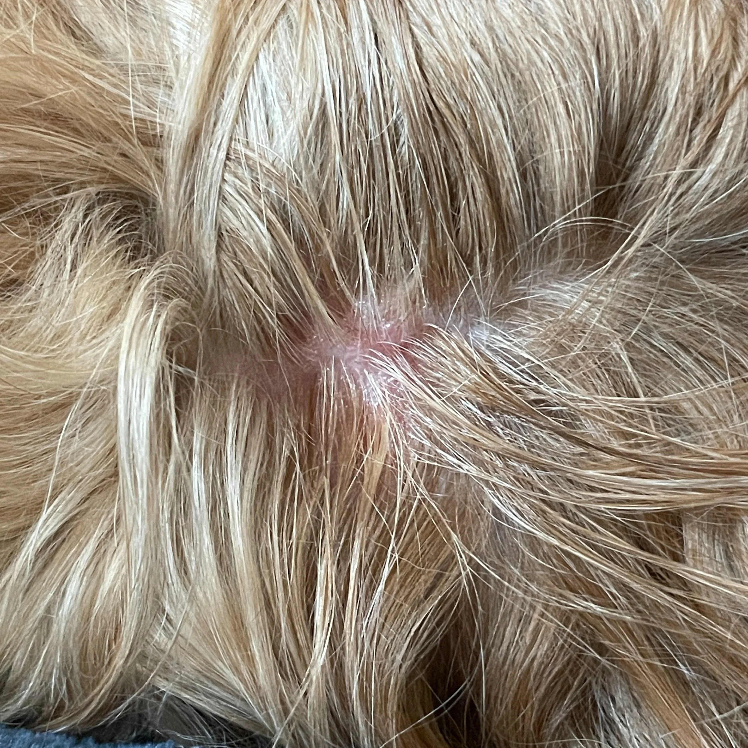 This is a patch of dry irritated skin on top of my head; mom applied NDC’s Organic Skin Soother (discount code: REDRUBY)